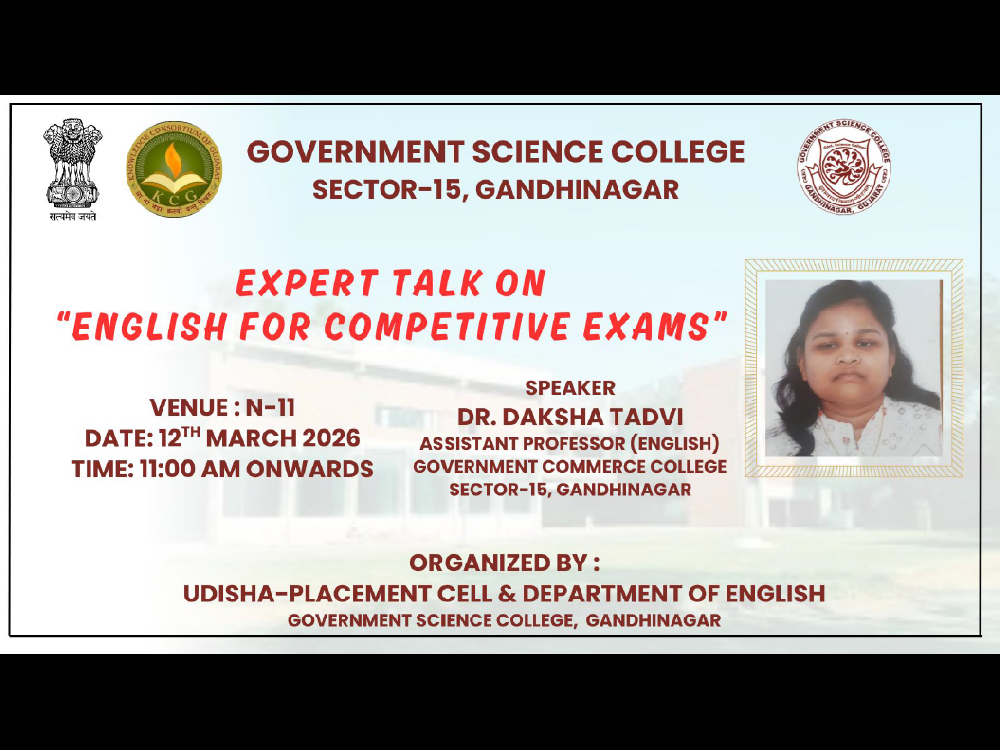 A very warm Greetings to all! With immense pleasure and gratitude, I take this opportunity to pen down a few lines for my college. Government Science College, Gandhinagar is situated in a beautiful and picturesque location in the clean and green capital city of Gujarat. Placed in an eco-friendly campus, the college is home to a well-diversified flora and fauna. The college provides education leading to Under Graduate Degree in the discipline of science. With a well-qualified team of dedicated and passionate faculty members, we foster critical thinking, creativity and problem-solving skills among our students. The nine gold medals that our institute has secured in the past five years is testimonial towards the meticulousness that our faculty and students have put forth in the field of education.